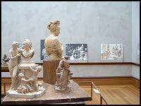 coming through the skylights. Good lighting means we don't have to adjust the white balance manually to achieve consistant results or compensate for extreme under/over-expsoure. If we were taking pictures under artificial lighting, we would have to make a few tests to see if certain white balance settings produced better results than fully automatic. On some cameras, this becomes extremely important to do. If we were taking pictures at the beach or in snow, we would typically have to keep in mind the need to increase expsoure compensation to keep bright beaches and snow from turning dark due to the very bright light provided by the sunlight. You can see already from the far away shot that the statues have been arranged for closer viewing and enjoyment, so typical sweeping shots used for landscape photography won't work as well here. Although it does give one a good sense of space and mood, unless you're taking an architechtural shot that is focused on the building elements, this isn't more than an estabilishing photograph to show others where you were later on since nobody can see the details in the statues from afar. But if there was an interesting foreground subject, or perhaps an interesting pose by someone closer to the statues, you may find a good photograph to be made here.